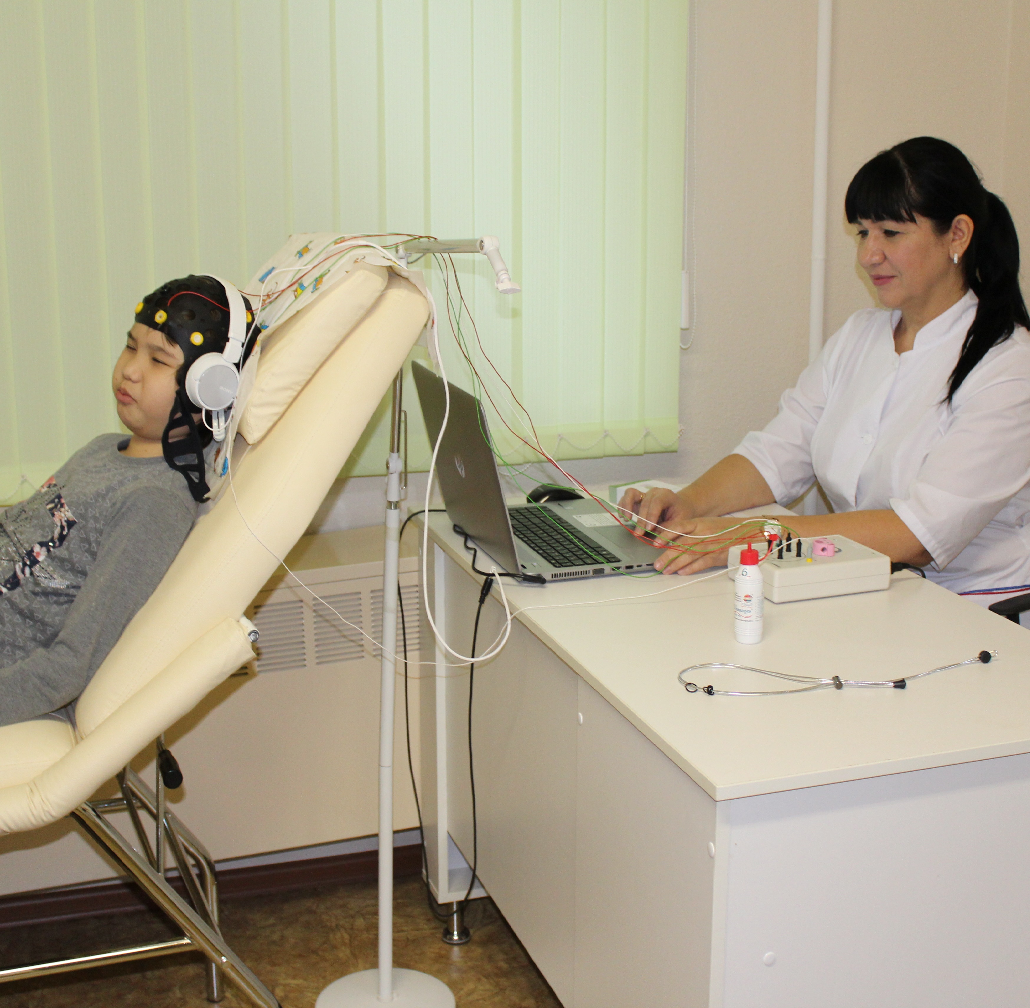 - нейрофизиологическое обследование головного и спинного мозга с использованием новейшего диагностического комплекса, в том числе электроэнцефалограмма головного мозга, ЭЭГ-видео-мониторинг, вызванные потенциалы (зрительные, слуховые, соматосенсорные, когнитивные) с оценкой функциональной зрелости коры головного мозга на соответствие календарному возрасту и электронейромиографическое исследование;